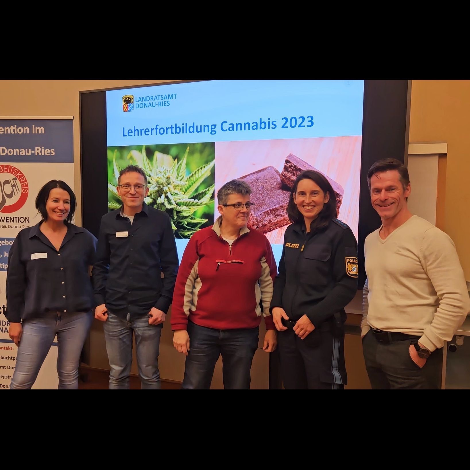 #Cannabis an der Schule – und jetzt? #Präventionsangebote, #Fortbildungen und #Elternabende in Schulen werden, gerade mit Blick auf die geplante Gesetzesänderung beim #Betäubungsmittelgesetz zum Cannabisbesitz, dringend notwendig. Im Landratsamt Donau-Ries fand kürzlich eine Fortbildung für Lehrkräfte vom Arbeitskreis Suchtprävention statt. In Zusammenarbeit mit KollegInnen aus unterschiedlichsten Institutionen wurde das Schwerpunktthema THC von allen Seiten juristisch, medizinisch und gesellschaftlich aufgearbeitet. Bild v.l.n.r.: Andrea Rambold (Landratsamt Donau-Ries); Stefan Graßl (Landratsamt Donau-Ries); Birgit Baier (Notärztin); Sabrina Trieb (Polizeiinspektion Donau-Ries); Niels Pruin (Caritas Suchtfachambulanz Donauwörth), Bericht Donau Ries Aktuell vom 16.01.2024 bei Presseberichte.