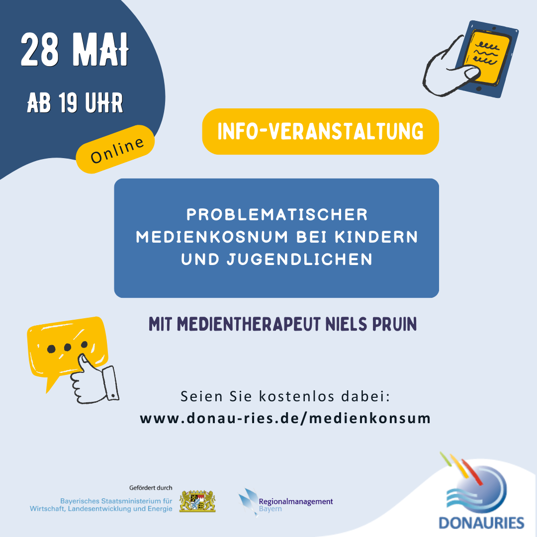 Um den problematischen #Medienkonsum bei Kindern und Jugendlichen geht es bei der kostenlosen Online-Infoveranstaltung am 28. Mai 2024 ab 19.00 Uhr.